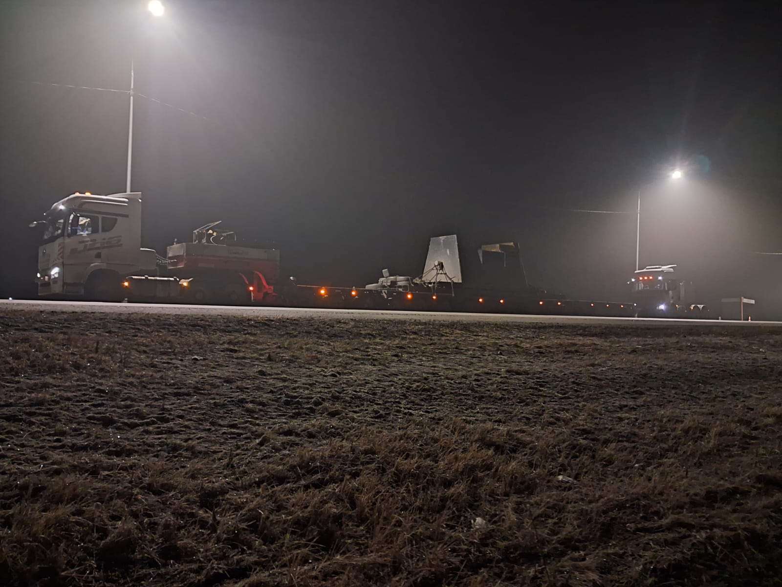 Для выполнения такой перевозки использовался модульный автопоезд и балластный тягач. Длина автопоезда составила 45,2 метров (тягач + 16 осей модуля).
