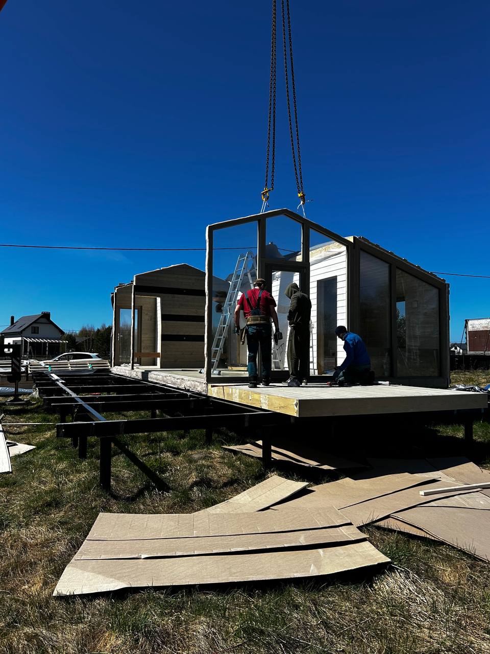 • Результат: модульный дом доставлен  за 12 дней в идеальном состоянии, установлен на участке заказчика и заказчик счастлив.