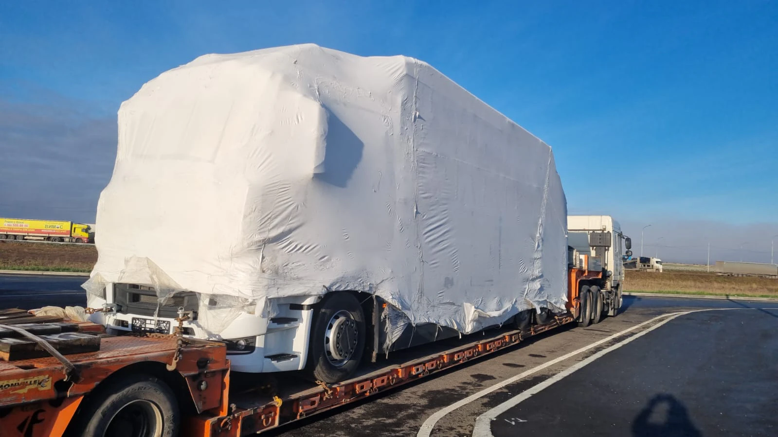 В начале ноября выполнена перевозка негабаритного груза тралом в Находку. Погрузка и выгрузка выполнена самозаездом. Для перевозки использован низкорамный трал  с передним заездом.Доставка заняла менее двух недель